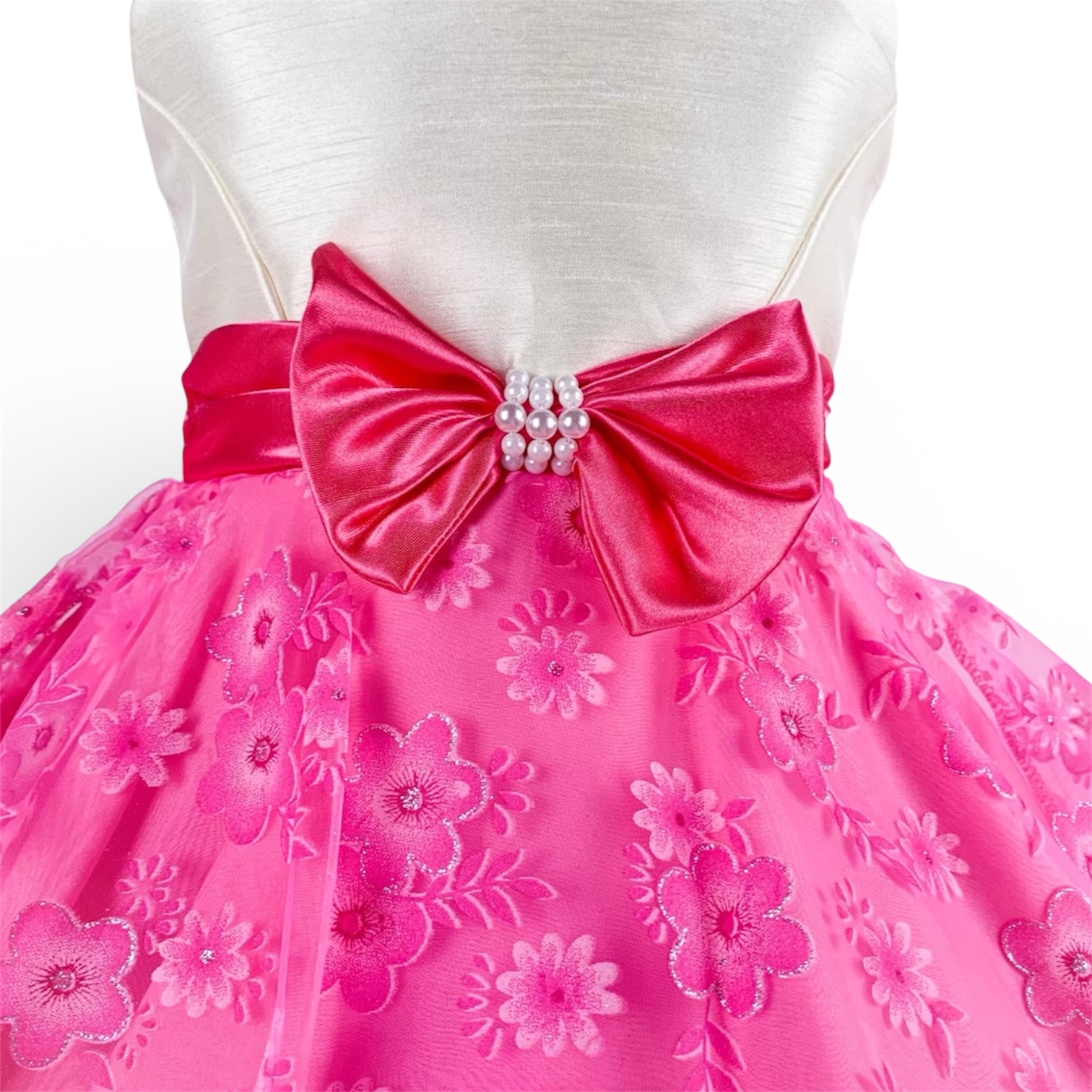 パールリボンプチフラワードレス(ビビットピンク)袖無し