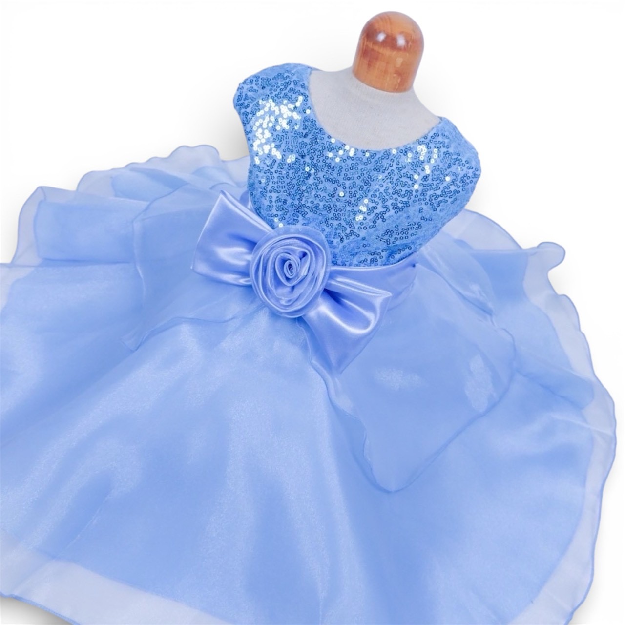 フラワーコサージュスパンコールドレス ブルー