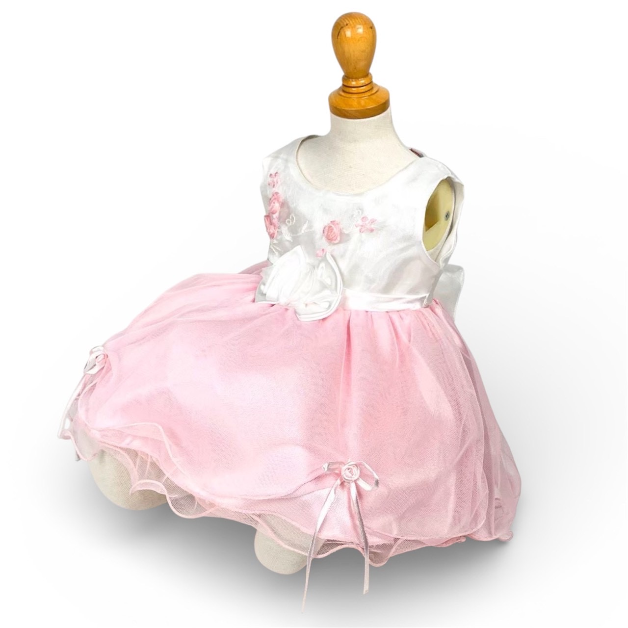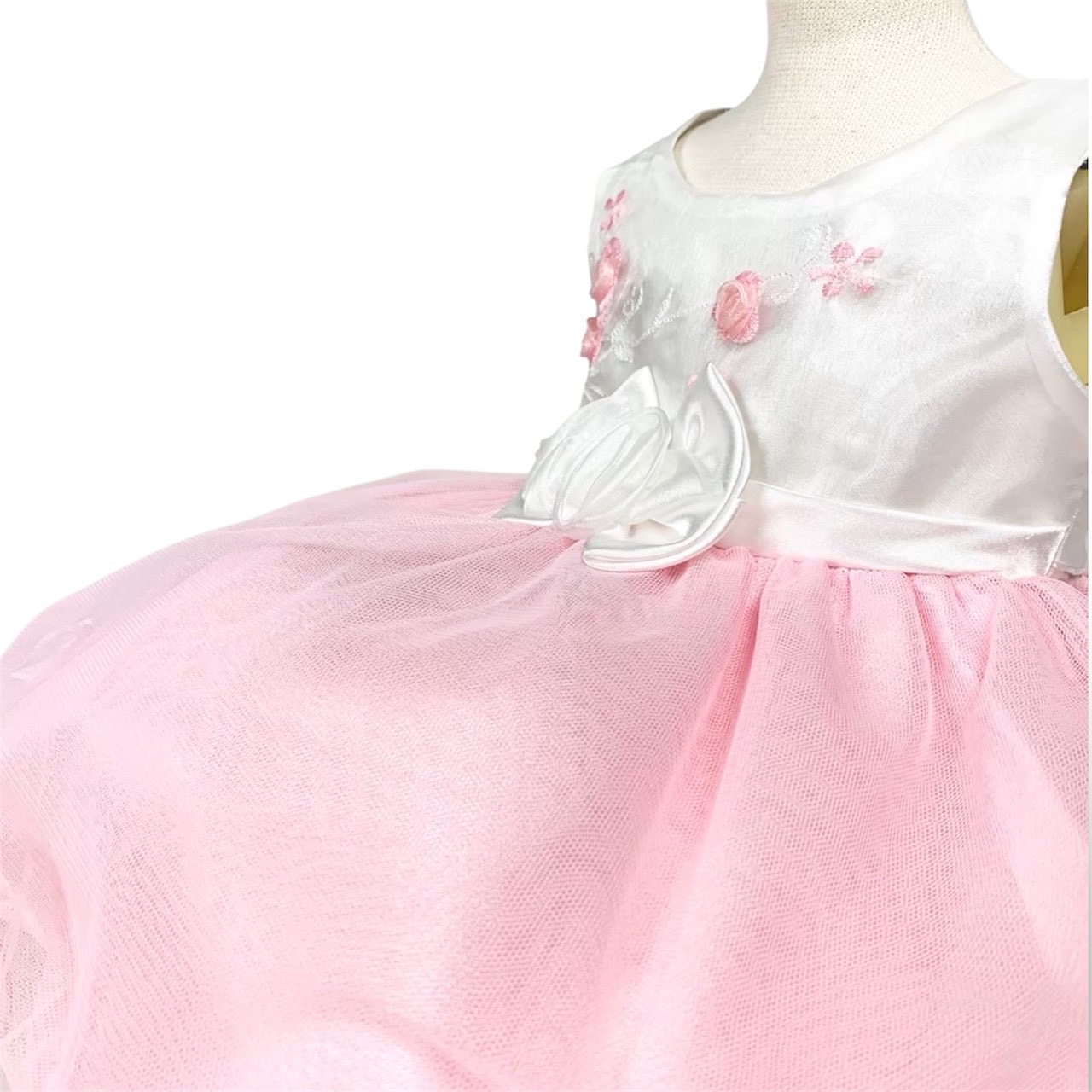 ホワイト&ピンク薔薇リボンベビードレス