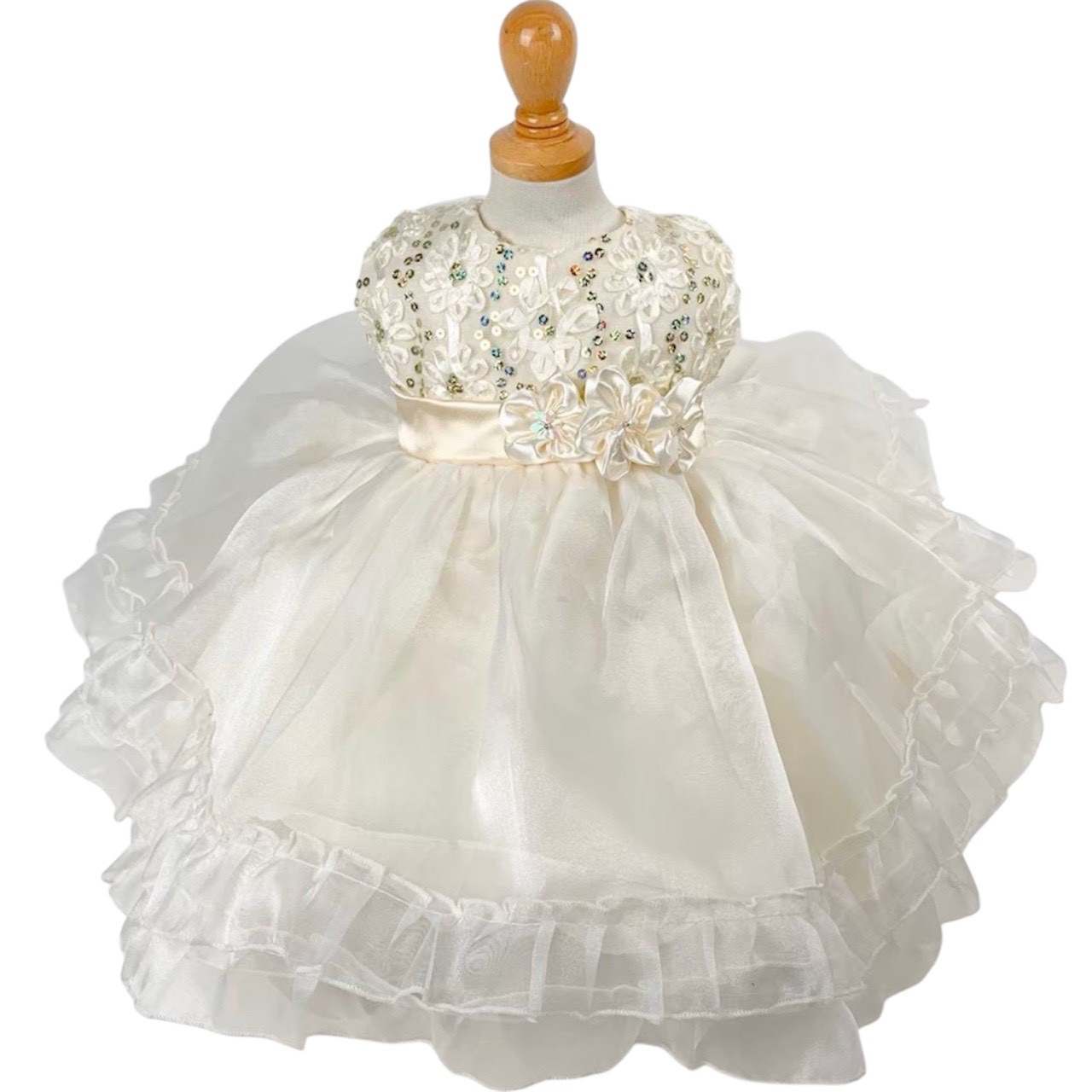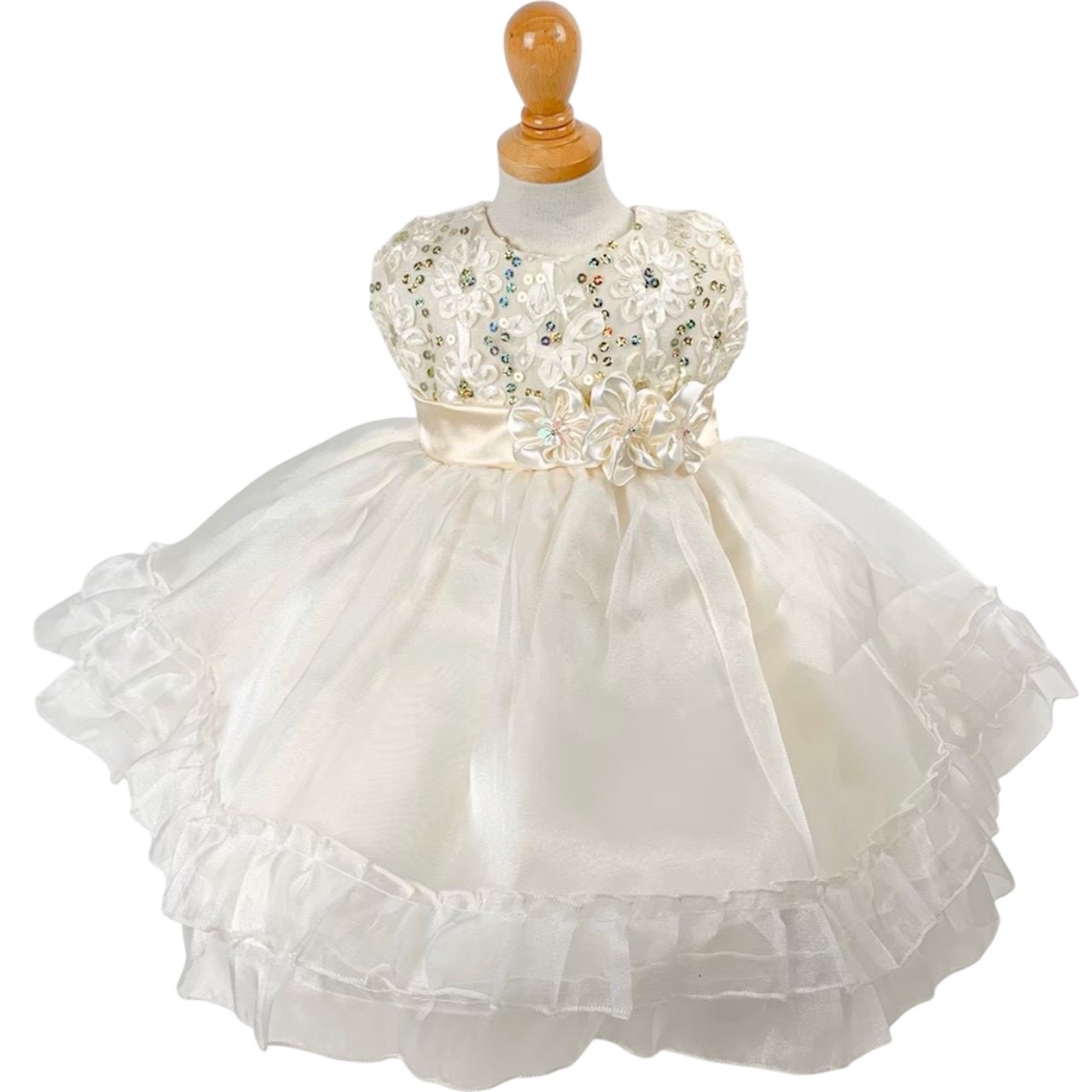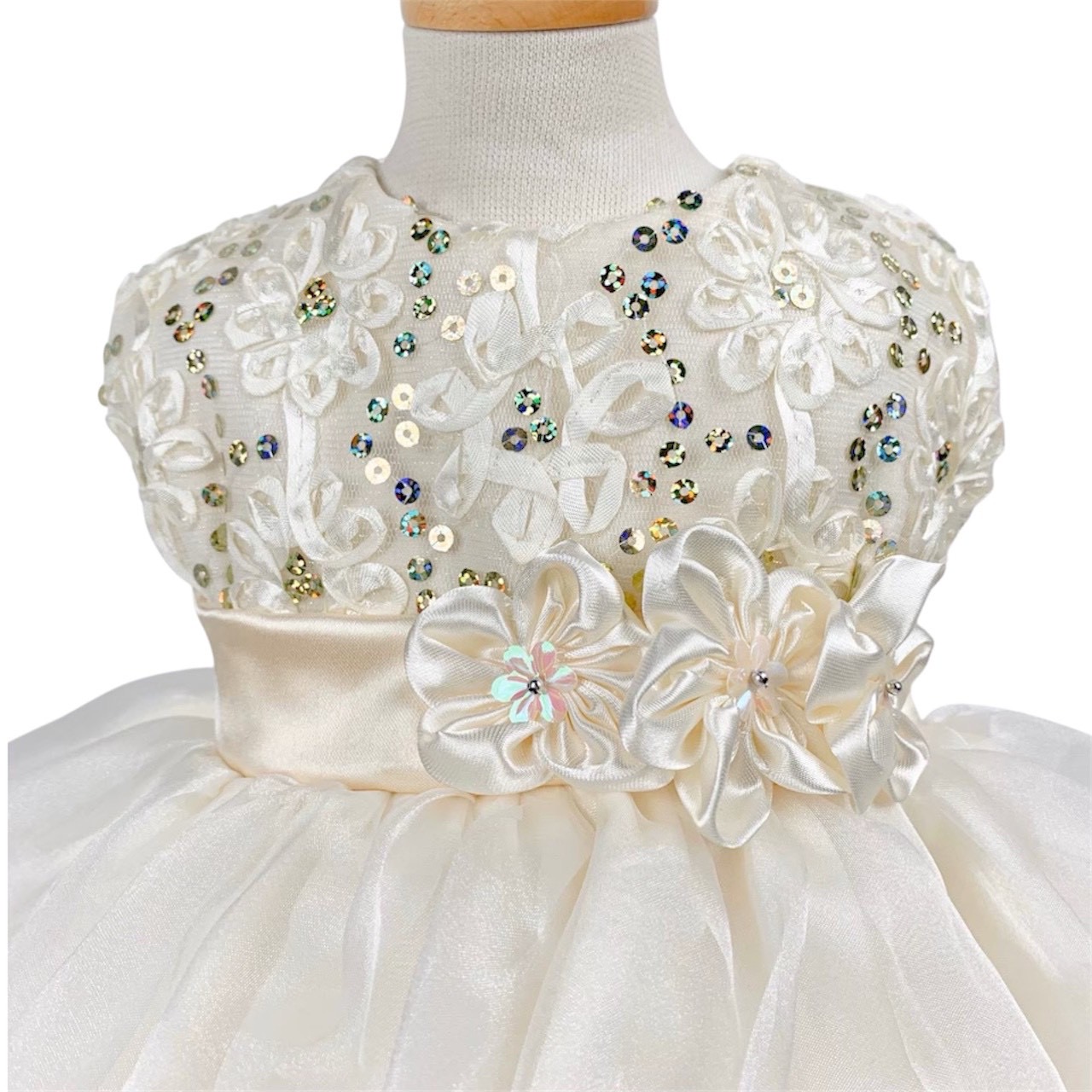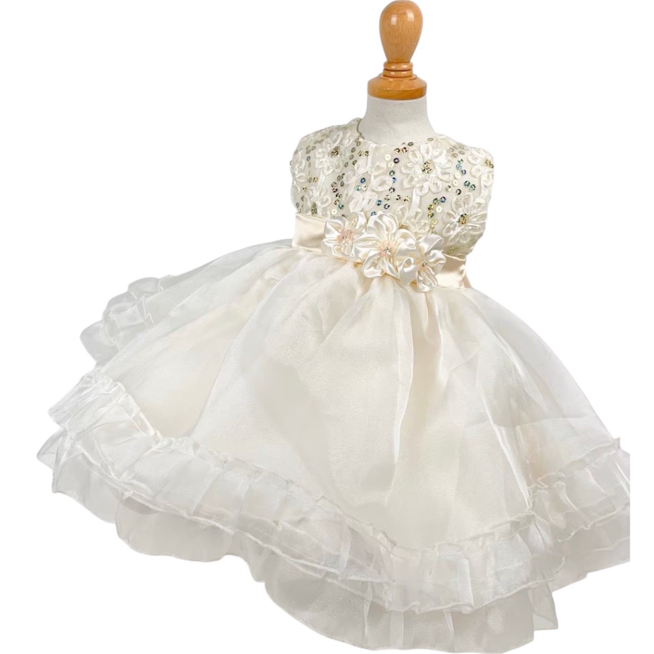 3連フラワーアイボリードレス