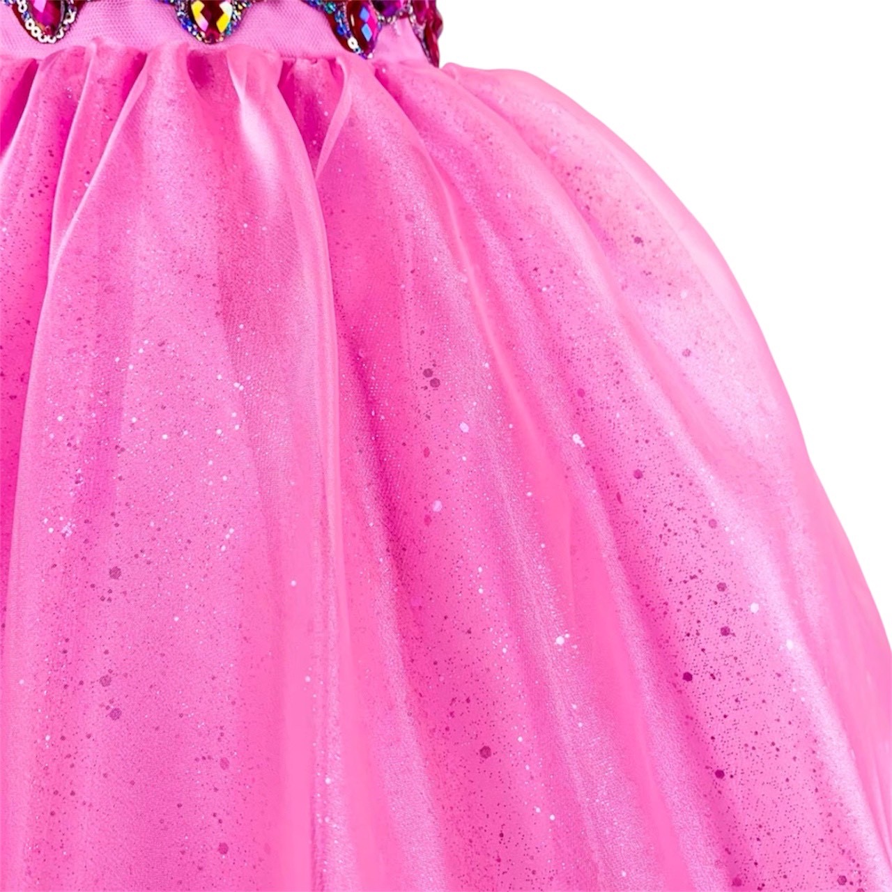 ボリュームのあるピンクのロングドレスです。