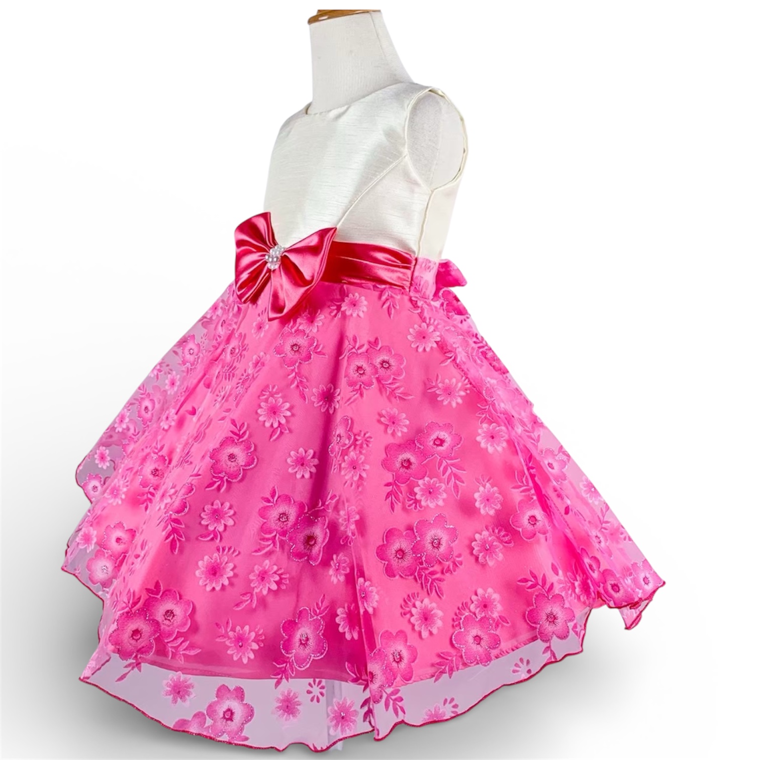 パールリボンプチフラワードレス(ビビットピンク)袖無し