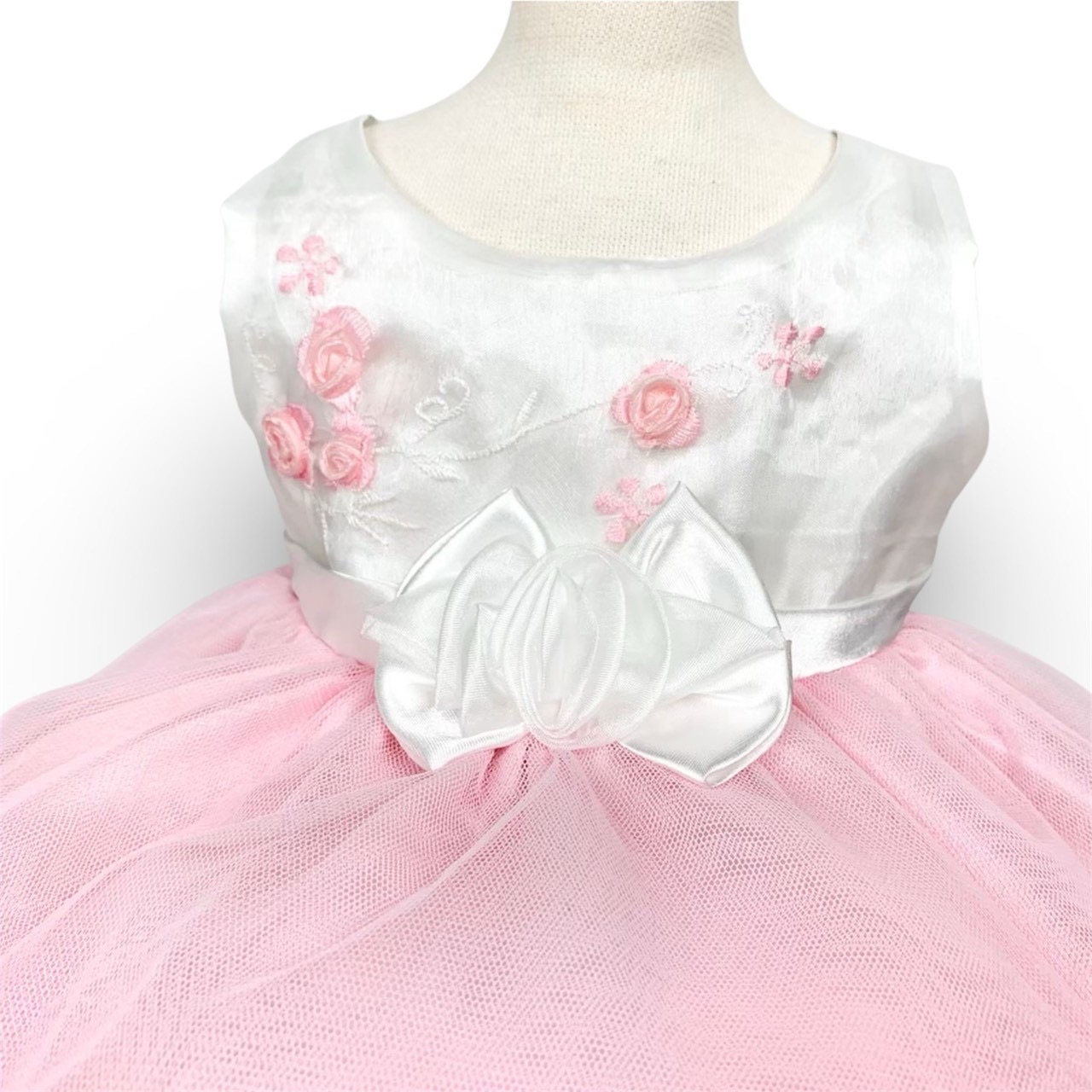 ホワイト&ピンク薔薇リボンベビードレス